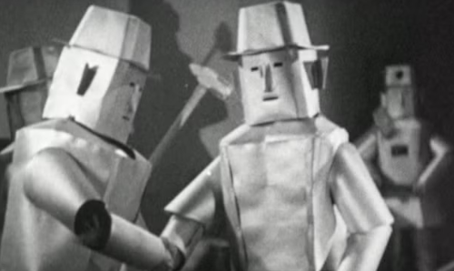 I watched a fun Bugs Bunny cartoon with a robot in it, and it got me thinking about how far back robots go in popular culture. I remember watching a serial from the 30s called "the Phantom Empire" where famous cowboy Gene Autry fights an advanced underground